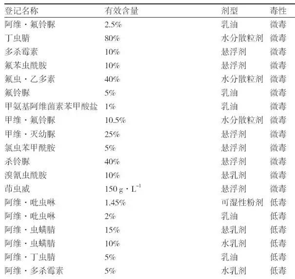 防治甘蓝上小菜蛾的部分登记药剂