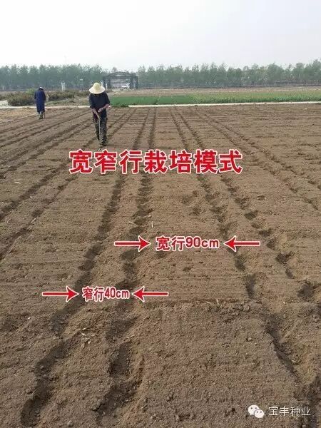 第一年种宽窄行,上一年秋季将土地旋(耙)平,达到播种状态。