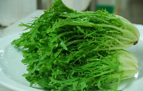 苦菊为菊科菊苣属,以嫩叶为食的栽培种,一二年生草本植物。学名Cichorium endivia L.,每100g嫩叶含水分95.1g、蛋白质1.2g、钙77mg及维生素等营养物质。适生食、煮食或作汤。苦苣叶披针形。头状花序,约有小花20朵,花冠淡紫色,雌蕊柱头双叉状淡蓝色,雄蕊连成筒状,花药淡蓝色。种子短柱状,灰白色,千粒重1.6g。种子发芽力可保持10年,生产中多采用保存1-3年的种子播种。