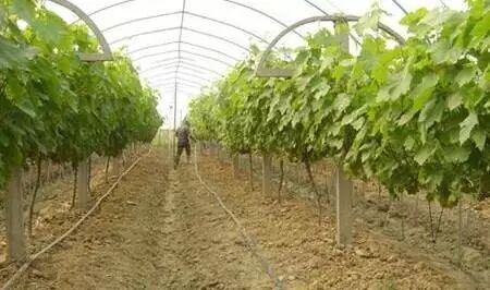 干旱对植株叶片影响最大,常引起叶片过早地枯死和脱落,不利于树体积累养分。8-10月份,葡萄常面临秋旱威胁,因此要注意抗旱灌溉,如果连续出现干旱晴天15-20天,一般就需要灌溉。可选用沟灌和穴灌等方式,有条件的用滴灌。沟灌是在葡萄的行间开沟,深20-25厘米,宽40-50厘米,并与灌溉水道垂直。行距2米的成年葡萄园在两行之间开一条沟即可,灌溉完毕将沟填平。穴灌是在主干周围挖穴,将水灌入其中,以灌满为度,穴的数量依树龄大小而定,一般4-8个,直径30厘米左右,穴深以不伤根为准,灌后将土还原。严禁漫灌、猛灌、久灌。