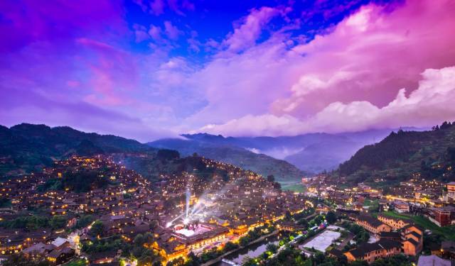 千户苗寨的夜景也是一绝,有时间的话可以在这里留宿观赏一下。