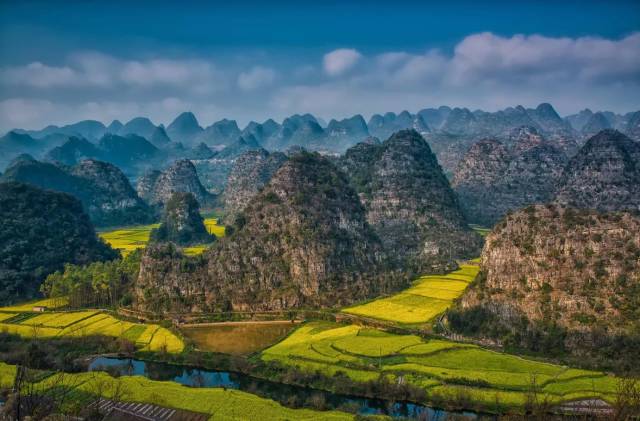 万峰林 眼前一座座紧挨在一起的山峰,如同一段相声里说的:“远望群山,一锅窝头”;也正如徐霞客所说,“唯有此处峰成林”,这说的就是“中国最美的五大峰林”之一:万峰林。 一座座山峰下面是一片片梯田,在中间又依山住着这里的村民,一切就像是世外桃源般美丽。 坐标:兴义市东南部 交通:乘19路公交车可达 票价:80元/人