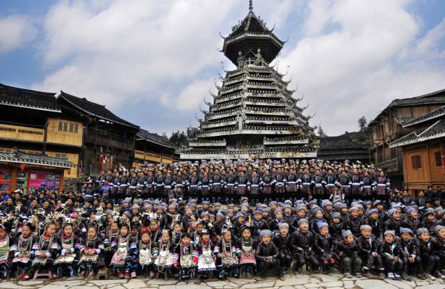 肇兴侗寨 肇兴侗寨是全国最大的侗族村寨之一,有居民6000多人,被称为"侗乡第一寨"。