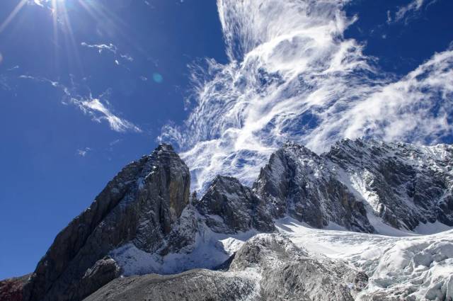 玉龙雪山也是横断山脉的沙鲁里山南段的名山,北半球最南的大雪山。