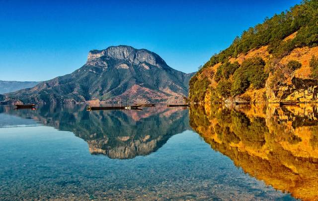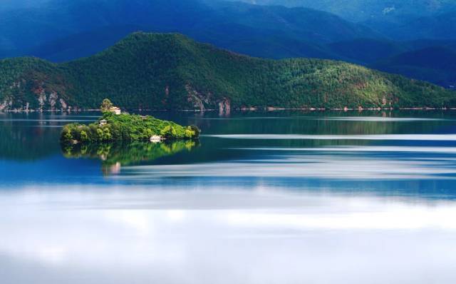 泸沽湖给人最直观的印象就是“水清、岛美”,它的最大能见度可以达到12米,湖水清澈蔚蓝,就像是一面镜子。