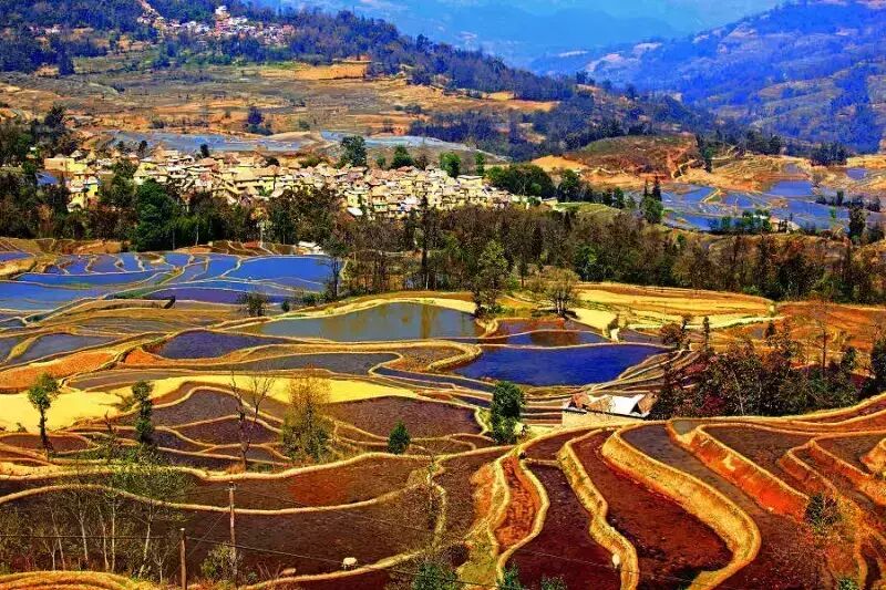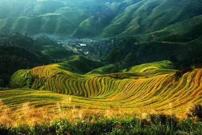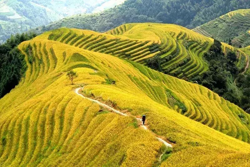 每到秋天,这里就像一座座金山层层叠叠,一幅金色画卷在眼前展开,让人流连忘返。
