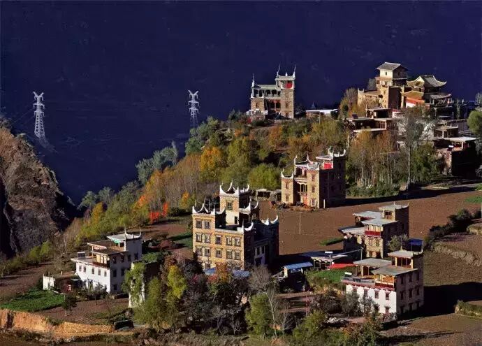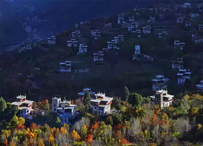 远远望去,这五彩斑斓迷人的藏寨秋色真让人看得眼花缭乱,秋色中的藏寨田园风光真乃神来之笔,画出这天地合一,让人赞叹不已仙境般地美丽画卷……