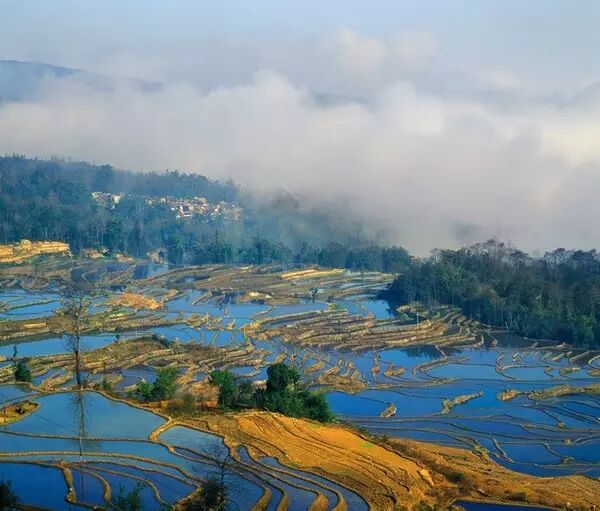 在这里,多依树看日出,老虎嘴看日落,箐口看云中仙境,坝达看日落、看云海,真的很美。连片的上万亩梯田,在茫茫森林的掩映中,在漫漫云海的覆盖下,构成了如诗如画、美轮美奂、神奇壮丽的景观。住在哈尼人家,感受古老村落的秋美气息。