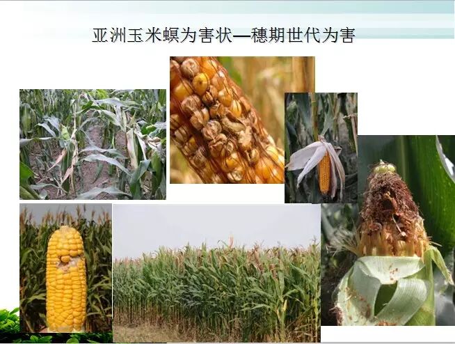 亚洲玉米螟(Ostrinia furnacalis) 俗名钻心虫,属鳞翅目螟蛾科,是玉米的主要虫害,也为害高粱和谷子等作物。主要分布于北京市、东北3省、河北省、河南省、四川省、广西壮族自治区等省区。各地的春、夏、秋播玉米都有不同程度受害,尤以夏播玉米最重。玉米螟可危害玉米植株地上的各个部位,使受害部分丧失功能,降低籽粒产量。北方春玉米区因玉米螟为害,一般年份减产10%左右,大发生年减产20%~30%。辽、吉、黑三省及内蒙古的东四盟地区玉米年种植面积约13500万亩,玉米螟常年发生面积达到8000万~11000万亩,产量损失10%~15%,严重发生时可达30%~50%,仅吉林省每年因玉米螟为害损失在5亿公斤以上。据内蒙古自治区通辽市植保站多年测定,田间玉米螟为害株率达30%时,产量损失率为8%~10%,为害率50%时,损失率为10%~15%;严重的地块,损失率可达20%以上。黄淮海夏玉米区三代玉米螟发生期,正值夏玉米穗期,植株高大、不易施药,使穗期玉米螟发生有加重的趋势,并加重穗腐病的发生。山东省2005年至2008年玉米螟曾连续三年大发生。山西省玉米螟为害在20%~30%,雌穗被害率达20%以上,对鲜食玉米生产、加工和销售影响很大。玉米螟也是西南和西北玉米区的主要害虫,四川省2006年发生面积568.7万亩,被害率30.4%。