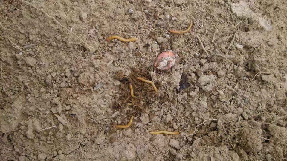 现场拍摄图片 一穴多达6头 金针虫密度过大,种衣剂已经无法防治。