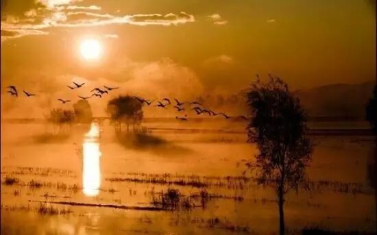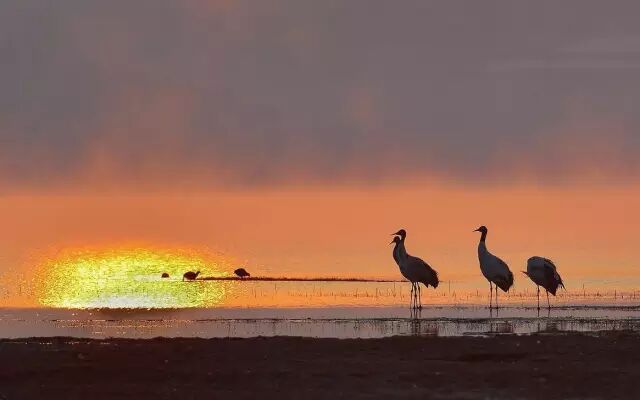 湖光山色,只有候鸟才知道的人间秘境,日落时分,蓝天和着静美的湖面,思念和着旷远的剪影,还有象征吉祥、幸福、忠贞的黑颈鹤动感的身姿。