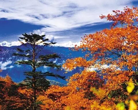 走在金秋的峨眉山林间,像是走在一幅浪漫深情的油画中。