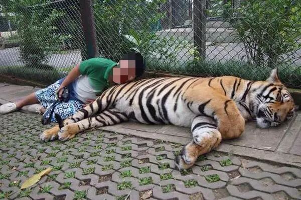 对了泰国再推荐一个清迈的老虎园,里面全是各种老虎,当然是驯化的,和人零。距。离。接触,你可以玩大老虎的尾巴,或者抱着小老虎照相,老虎一个个好像大猫,我们就看到2只成年大老虎抢毛线球玩,巨可爱