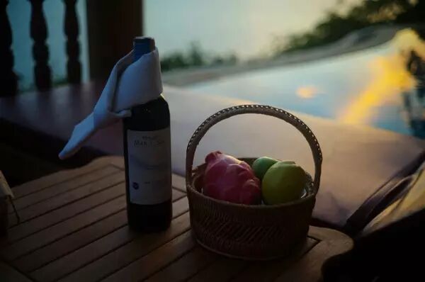 赠送葡萄酒和水果