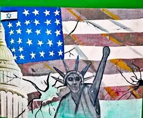 电影《逃离德黑兰》里的美国大使馆外墙涂鸦,注意看那个星条旗哈哈