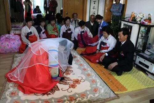 朝鲜族婚姻也有自己的民族特色,近亲、同一家族不通婚。订婚前经人介绍,男去女家相亲。女方不要彩礼,男方为女方购买衣物、被褥,向女家老人、兄弟赠送纪念品,并确定婚期,择日结婚。新娘不得脚踏地,若妹妹先于哥哥结婚,由哥哥背上喜车。婚仪后,设宴款待陪亲人和宾客。三日后,新娘回娘家。建国后,废除旧婚姻制度,男方以姑娘娴静、贤惠,善劳动,能歌善舞为择偶条件,女方则以男方英俊、豁达、有男子汉气质、有本事、具有民族文体爱好和技艺专长(摔跤、歌舞),为选偶条件。婚前,履行结婚手续,新郎带着车辆去娶亲,举行婚仪,设宴待客。晚上新人、宾朋、家人共同跳舞、唱歌至深夜,婚后三日回门。