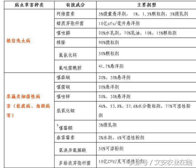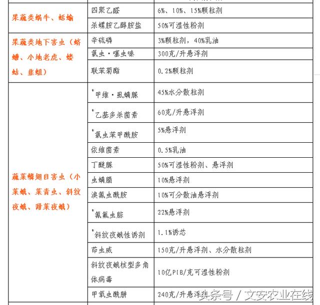 蔬菜、瓜果病虫草害防治药剂名单