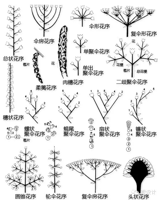 花序是花序轴及其着生在上面的花的通称,也可特指花在花轴上不同形式的序列。