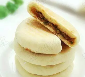 3.把醒好的面取出,搓成长条,揪剂子,然后擀成饼皮,包入馅料,像包包子那样,用手指轻按几下压瘪;