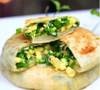 4.煎锅中倒入少许油,开始烙饼,煎至两面金黄即可。