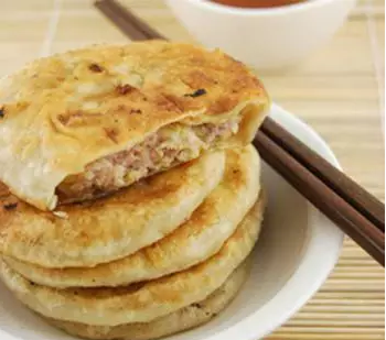 3.放入豆沙馅,包成包子状,翻过来按扁。锅内抹一层油,放入馅饼,两面煎黄。