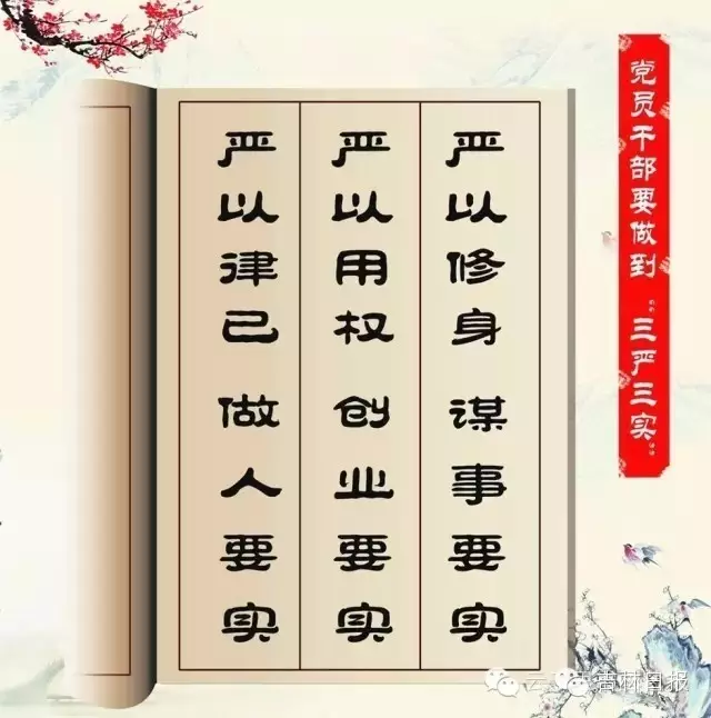 严以律己——要心存敬畏、手握戒尺,慎独慎微、勤于自省,遵守党纪国法,做到为政清廉。