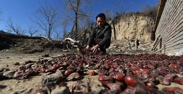▼新疆一地的红枣
