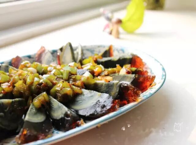 4.辣椒出锅,铺在皮蛋上