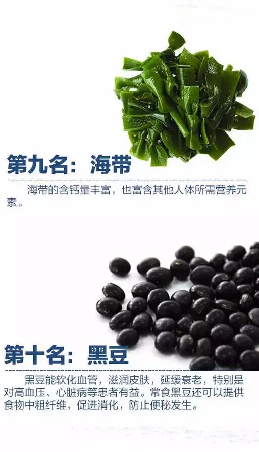 补钙食物前十名: