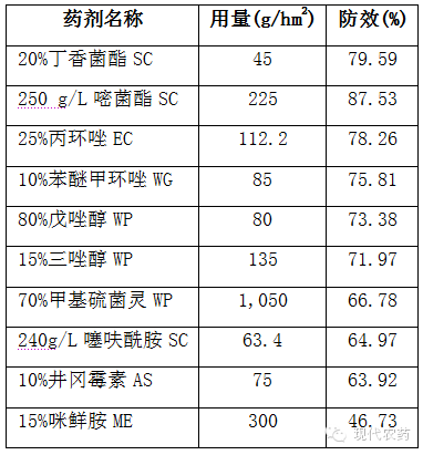 表6 10种杀菌剂防治水稻纹枯病的田间试验效果