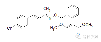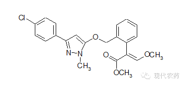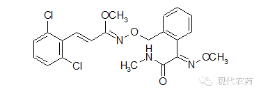 所谓strobilurins类杀菌剂是以天然抗生素strobilurin A为先导化合物开发的一类新型杀菌剂。它们的出现克服了strobilurins A见光易分解和难于商品化的缺点,保留了先导化合物中活性基团β-甲氧基丙烯酸酯,通过交换与双键结合的苯基、嘧啶基等基团,从而提高化合物的渗透性。其作用机理是对植物病原菌有电子传递抑制作用,并对螨类呼吸链也具有相同水平的电子传递抑制作用;由于创制的甲氧基丙烯酸酯药效活性基团占据strobilurins类杀菌剂的主导地位,因此这类杀菌剂常称为甲氧基丙烯酸酯类杀菌剂。