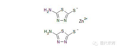 噻唑锌是浙江新农化工公司1999年开始自主研发并取得中国专利(ZL00132119.6)的噻二唑类有机锌的新农药,同时在9个国家申请了专利,现已获得澳大利亚、印度尼西亚、埃及、越南、菲律宾等国家的专利授权。经过10多年的研究表明,噻唑锌是一种完全区别于铜制剂的有机锌的化合物,对水稻、果树、蔬菜等50多种作物的细菌性病害有较好的防治效果,是防治农作物细菌性病害的新一代高效、低毒、安全的农用杀菌剂。目前在浙江、广东、云南、山东等28个省市广泛应用于蔬菜、水稻和部分果树类作物上,显示出优异的防治效果。