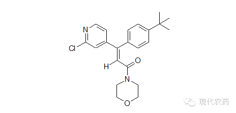 丁吡吗啉(试验代号ZNO-0317)是由中国农业大学、江苏耕耘化学有限公司和中国农业科学院植物保护研究所联合研发创制的丙烯酰胺类杀菌剂。它是在烯酰吗啉化学结构的基础上采用模拟方法合成的一种新颖杀菌剂,其为卵菌纲真菌杀菌剂。