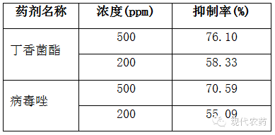 从表8可见,丁香菌酯对抑制烟草花叶病毒活性的效果明显优于病毒唑。