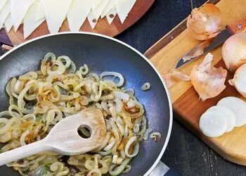 炒洋葱时,在切好的洋葱上撒点干面粉,洋葱炒熟后色泽金黄,质地脆嫩,味美可口。