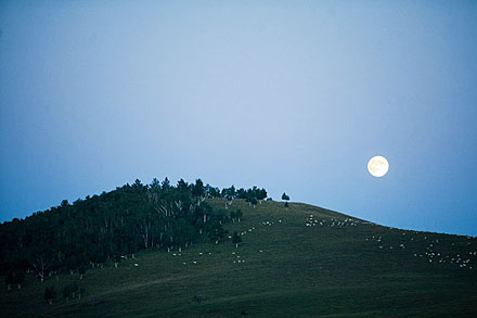 ♥一轮圆月升起在有白桦林和羊群的山上,清光万里。最后的牧歌绝唱之地,愿您安好。