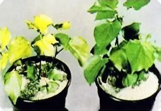 4、棉花:植株矮小,整株变为淡绿或黄绿色,生育期推迟。