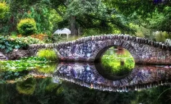 曲径通幽人罕至,石桥斑驳岁月稀。秋枫青苔相映色,望断秋水少涟漪。