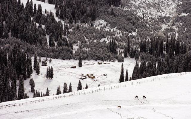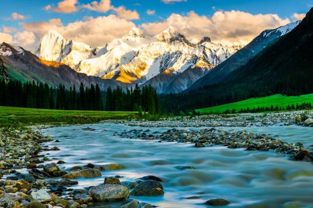 库尔德宁位于巩留县东部山区,是南北走向的山间阔谷。独特之处是,通常的山沟多顺山势而下,唯独这条阔谷却与雪山平行。库尔德宁即是横沟之意。