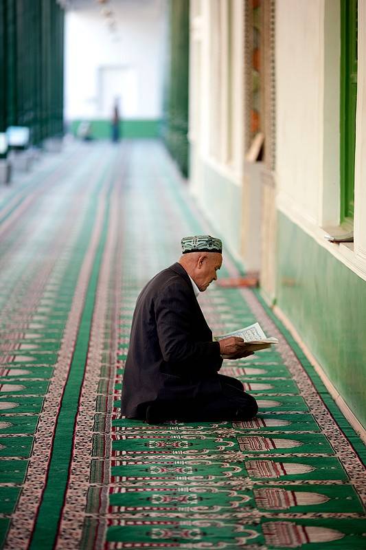 艾提尕尔,意为节日礼拜场所,位于喀什市中心解放路,是新疆最大的清真寺,也是全疆伊斯兰教的活动中心。它始建于1442年,后另经重修扩建,才有今天规模。大寺规制严整雄伟,砖砌方形拱寿门的大门楼高达12米,边廓环以15个穹形壁窿形楼。分为“正殿”、“外殿”、“教经堂”、“院落”、“拱拜孜”、“宣礼塔”、“大门”等七部分。大寺正门楼以浅绿色为主色,布满精细刻花;宏大的礼拜寺和教经堂,极富伊斯兰特色。