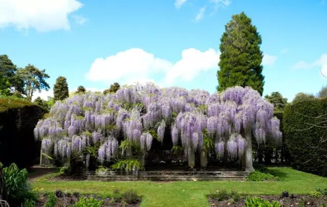 据说每个学校都有一座紫藤萝长廊,这茂密的紫藤萝瀑布能否唤起你对过去的美好回忆?