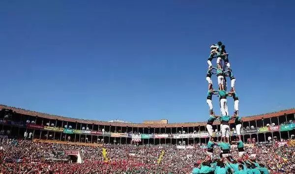 在西班牙东北部的卡斯特尔广场里,人们将这个18世纪始的传统项目转变为了现代体现实力的比赛竞技。这座人叠成的塔就是当地的加泰罗尼亚节的亮点,人们在几分钟内向上攀登,最终叠成一个令人惊叹的高度,一般最顶层都是一个小孩子,他将小心翼翼的站起来,向疯狂尖叫的人群致敬示意。Bernat Olle是其中的姣姣者,他说:“最好的孩子需要安静的上上下下,毫无恐惧,我曾经在高中的时候与朋友挑战搭成一个四层的人塔,我的感觉就像是站在健身房里的那种稳定球上一样,下去的时候挺不容易,你有可能摔下去然后悲剧的摔断脖子。”