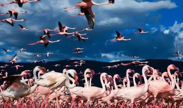 作为候鸟们从非洲到欧亚迁徙路线上的休息站,位于东非大裂谷里的肯尼亚湖就像是百鸟会议厅一般,拥挤着包括十三种珍稀物种在内的100多种迁徙鸟类。在这片湖面上,四百万只火烈鸟觅食在大白鹈鹕的鸟巢之间,在湖中还有成群的黑面琵鹭,鸊鷉和鹳。从寒冷的十一月到来年的三月回暖之前,这里都将是它们的家园。