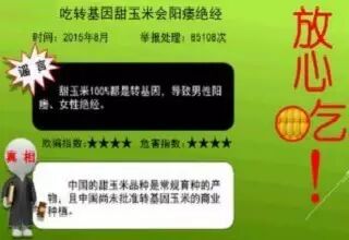 网上谣言:甜玉米100%都是转基因,导致男性阳痿、女性绝经。