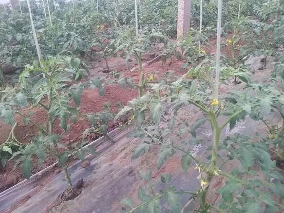 两个西红柿棚,今年3月开始使用勃生第四态能量源植物用低温等离子体复合制剂喷施型(以下简称:勃生喷施型)。李红军原话说:“3月4日喷第一次,3月9日喷第二次的时候发现,没有喷施的刚点上花,喷过的,细看柿子火星鸡蛋黄大了。”