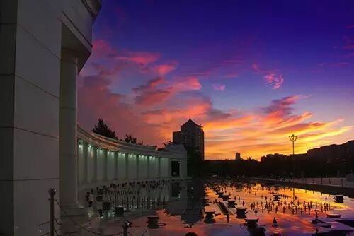 东港商务区音乐喷泉广场西临大连港突堤码头、东依国际游艇港,与大连国际会议中心遥相呼应,是东港商务区乃至大连市的标志性广场。从空中俯视,整个广场的外轮廓类似一只飞翔的海鸥,这是根据奥地利蓝天组合设计的国际会议中心放射出来的形状,以此充分展现浪漫进取的海洋文化、丰富多彩的滨海风光以及绿色现代的发展主题。整个喷泉以大海、潮水为背景,与璀璨夺目的国际会议中心遥相呼应、互为映衬,显示出海的风采、潮的韵律。此外,在东港还可以体验国内具有异国风情的现代建筑群还有威尼斯一样的水城,还可以在船上亲身体验水城的别样韵味。