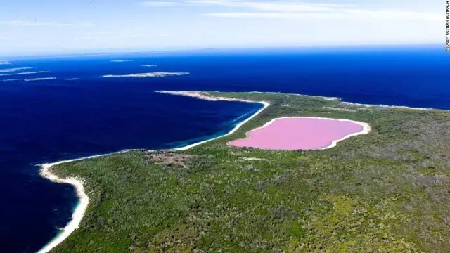 希利尔湖位于澳大利亚洛切切群岛上的中间岛,是一个椭圆形的盐水湖。在1802年被英国海军探险队队员马修·弗林德斯(Matthew Flinders)发现,奇特的是希利尔湖的湖水为粉红色,所以又被称之为“粉红湖”!