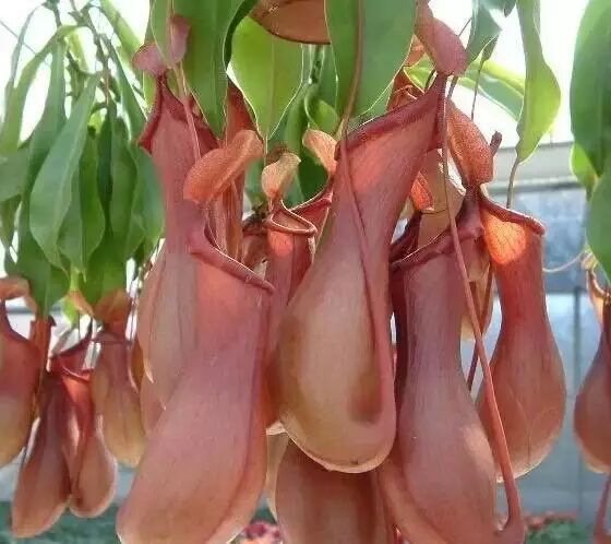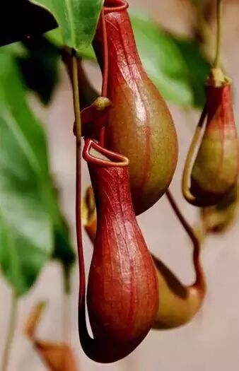 猪笼草口部红红的,十分鲜艳,猪笼中会分泌出有甜味的蜜汁,此蜜汁有麻醉作用,当虫子进入猪笼中吸食蜜汁后,虫子便会被麻醉致死于笼子中,通过蜜汁的分解,虫子尸体中的蛋白质慢慢被猪笼草吸收。这个捕食过程非常有趣。经专家考证,猪笼草是世界上最大的食肉植物。