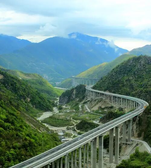 这条路基本就是超级高架桥和超长隧道的结合体,没有什么平地。有隧道25座、长约41公里,其中特长隧道2座,长隧道16座。在路上驰骋你会不会有一种触摸天空的幻想?