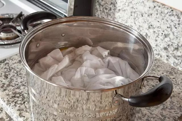 将白色衣服浸入锅内